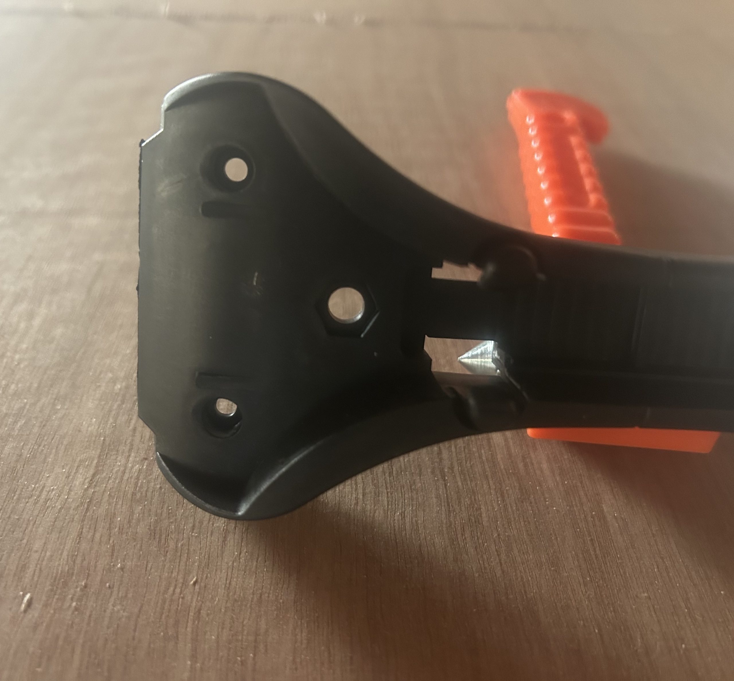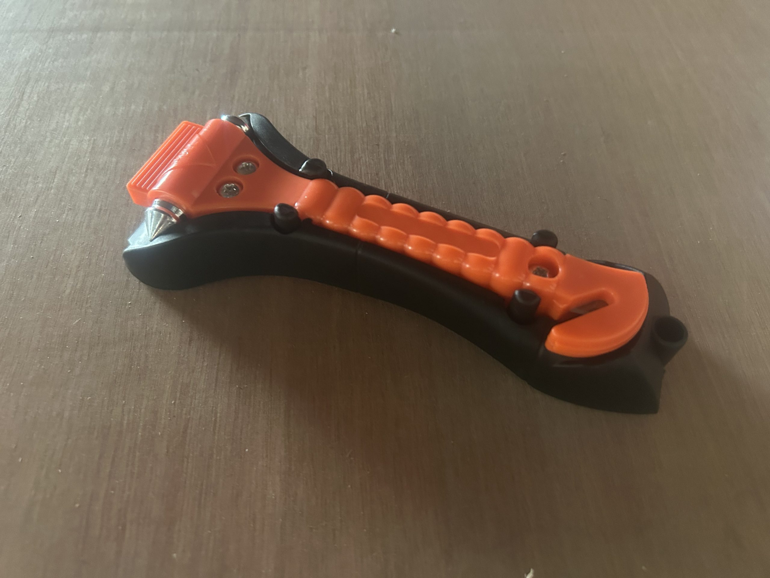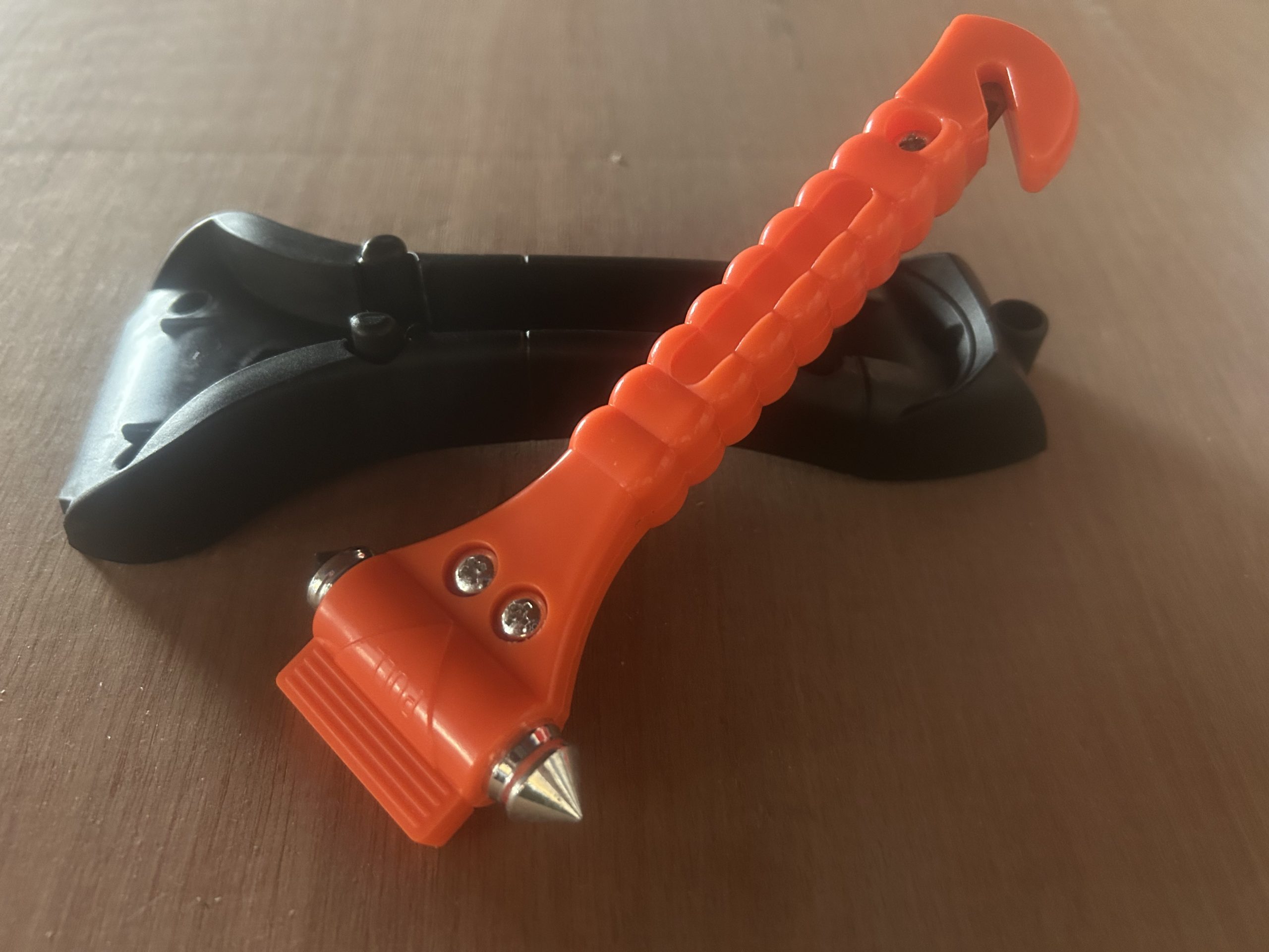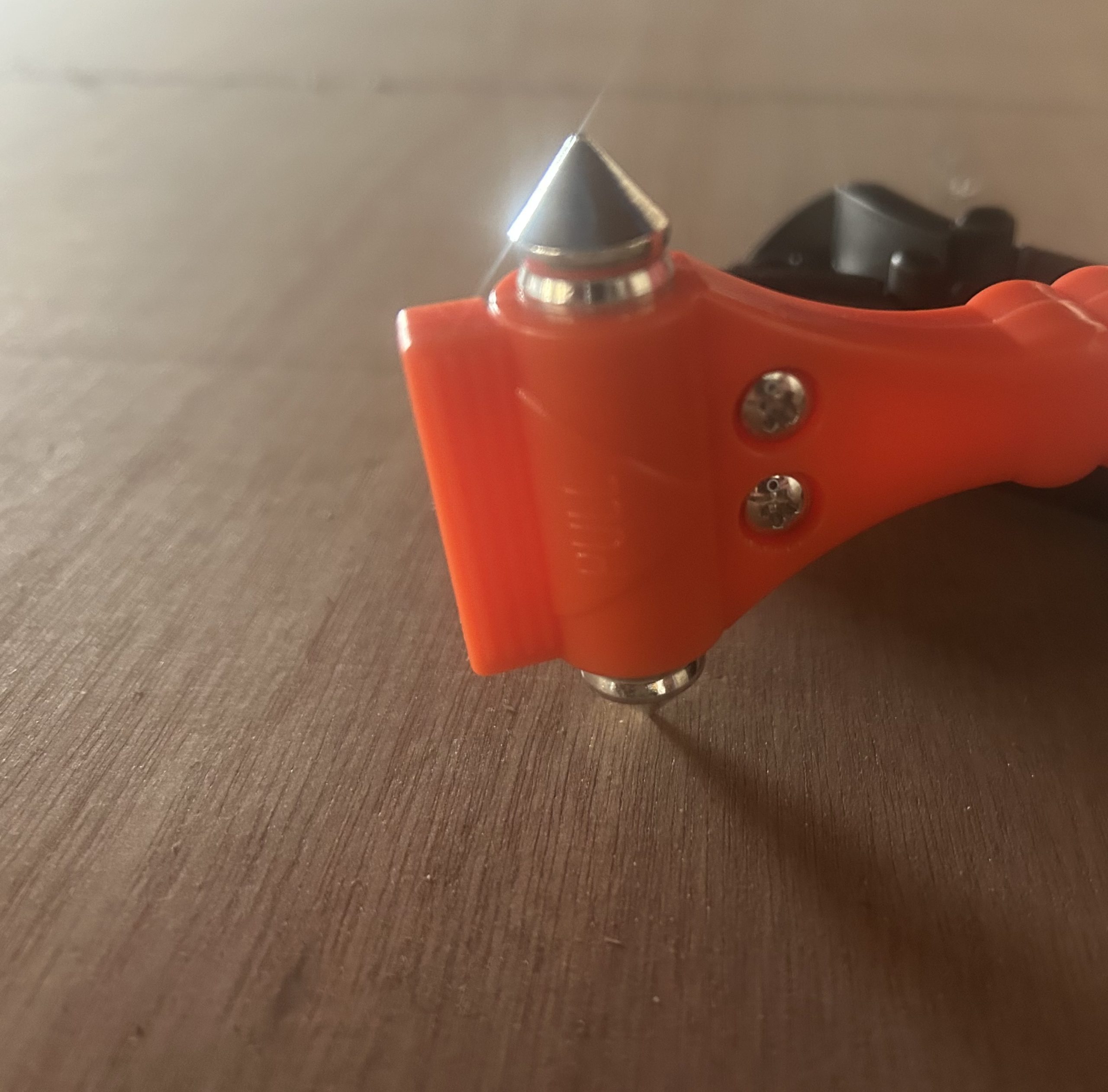 Dispositif indispensable d’urgence 2 en 1, compact et efficace, permettant de briser les verrière d’ULM et de couper les harnais en cas d’accident.